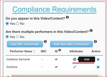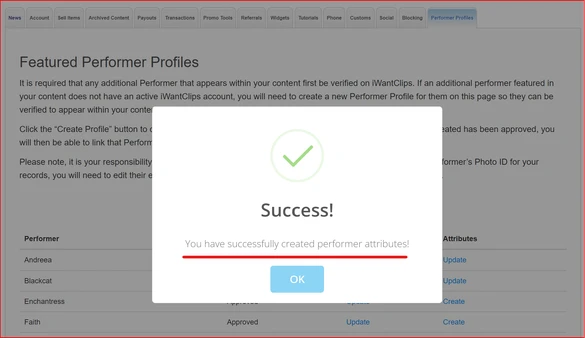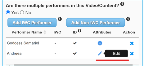 An Artist can add attributes to their non-IWC featured performers as well. By accessing the "Performer Profiles" tab, a column was added to create the attributes for the performer.