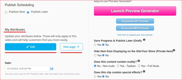 If the Artist has not completed the Artist Attributes on the Artist's account page, they will see "Add Attributes" instead of "Edit". Using this feature will only add the attributes to the current video that they are adding or editing.